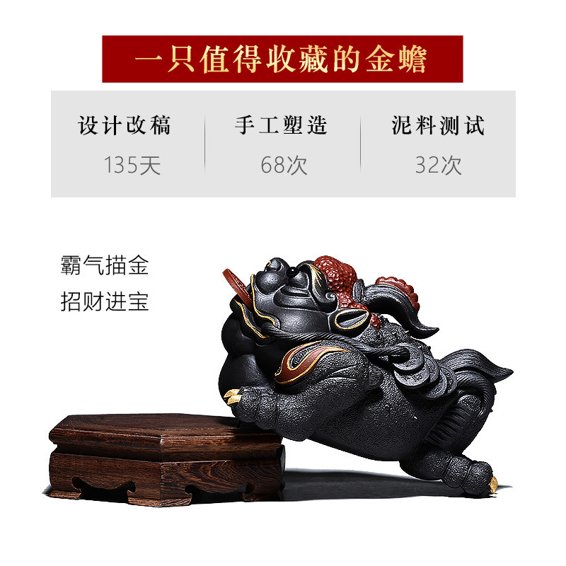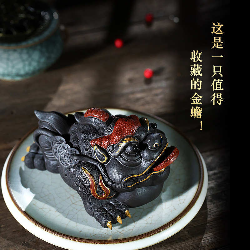 Yixing Purple sand three-legged gold toad pure handmade Hongyun Dangtou tea Ceremony ornaments can raise gold Toad tea pet