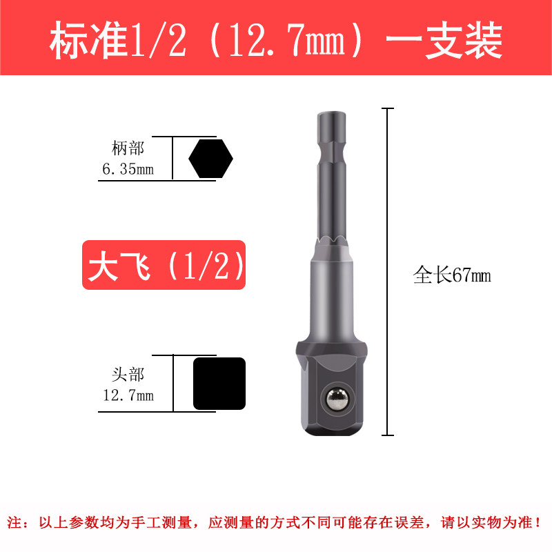 Electric drill joint Electric screwdriver conversion head Pneumatic screwdriver hex handle to square sleeve adapter rod Dafei Zhongfei 1 4-inch socket wrench