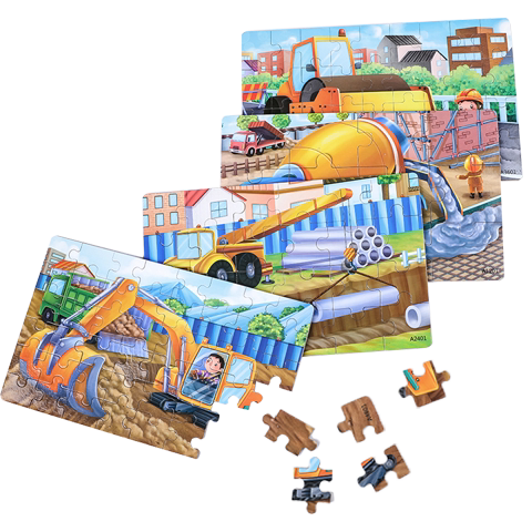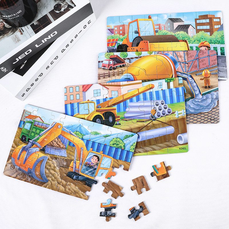 Children's puzzle building blocks puzzle 12 12 24 36 48 48 of wood four-in-one puzzle suit cartoon traffic puzzle