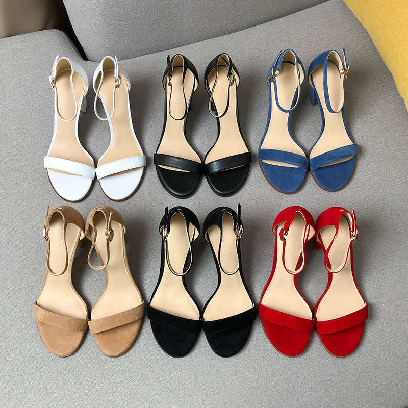2021 new item sw word with sandals female fairy wind summer wild medium thick heel low heel word buckle heels
