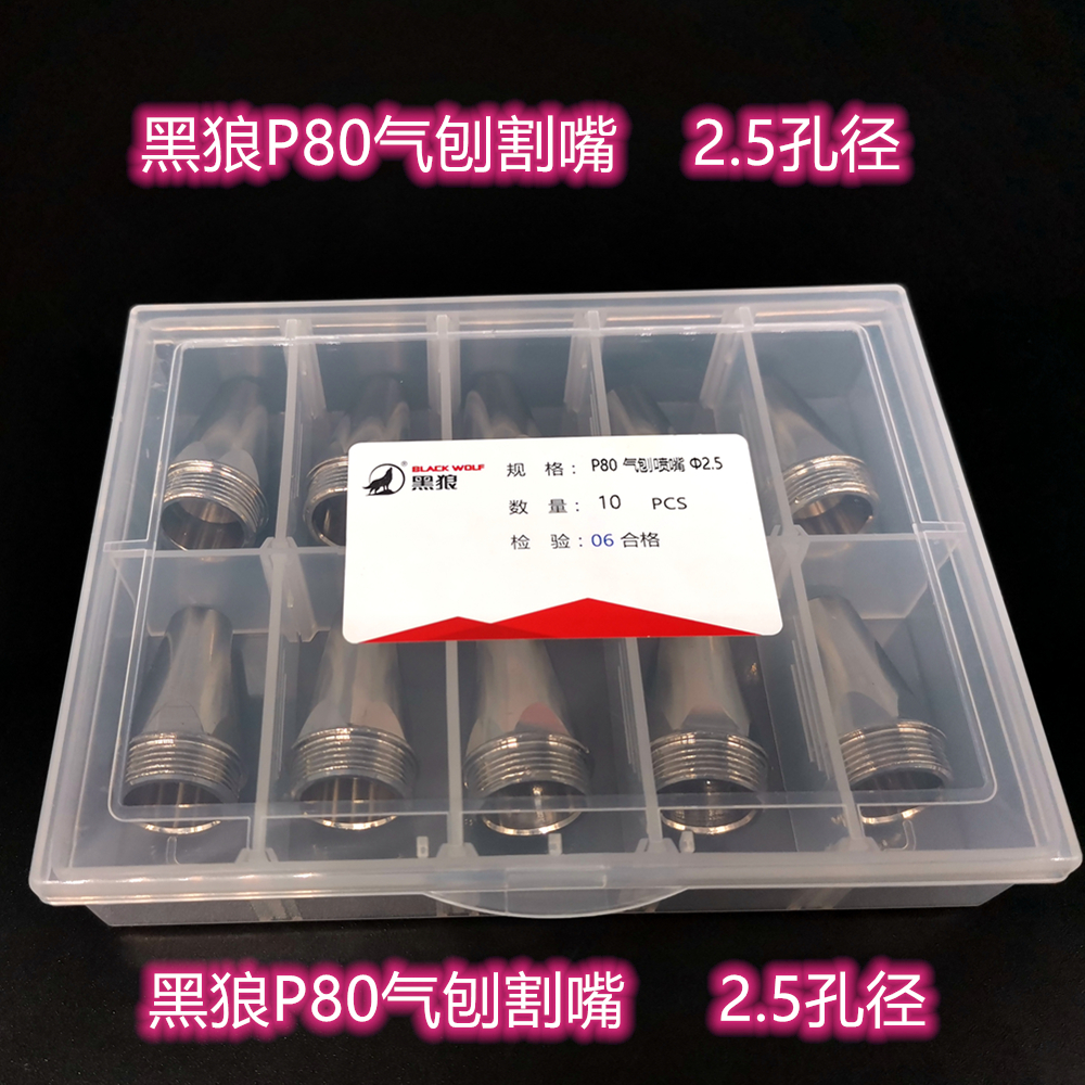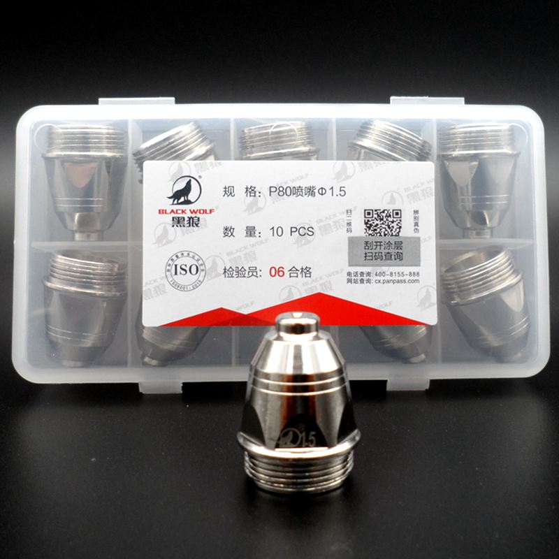 Black Wolf P80 Nozzle + Electrode (1.1 hole) 10 sets of Black Wolf P80 nozzle + electrode (1.3 holes) 10 sets of Black Wolf P80 nozzle + electrode (1.5 holes) 10 sets of Black Wolf P80 nozzle + electrode (1.7 holes) 10 sets of Black Wolf P80 air planer nozzle (2.5 holes) A box of Black Wolf P80 air planer nozzle electrode 2.5 holes 10 sets