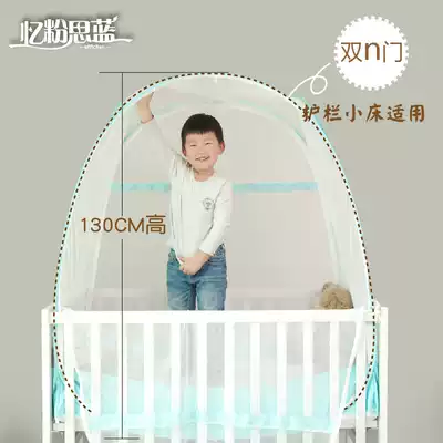 Reminiscence powder blue 2021 New crib mosquito net foldable non-installation children's mosquito net cover zipper full bottom Universal