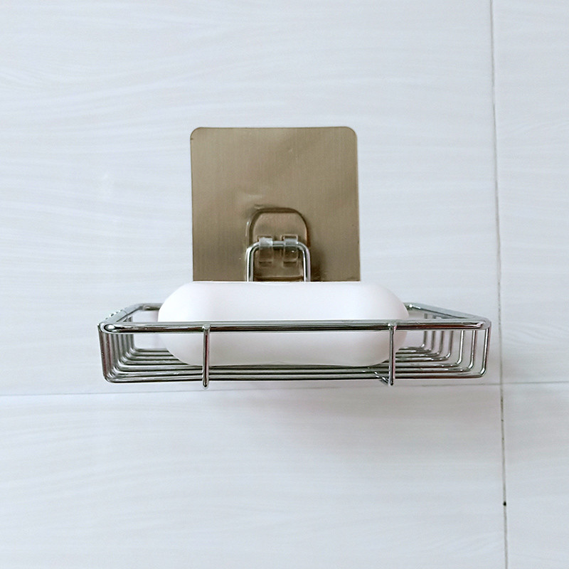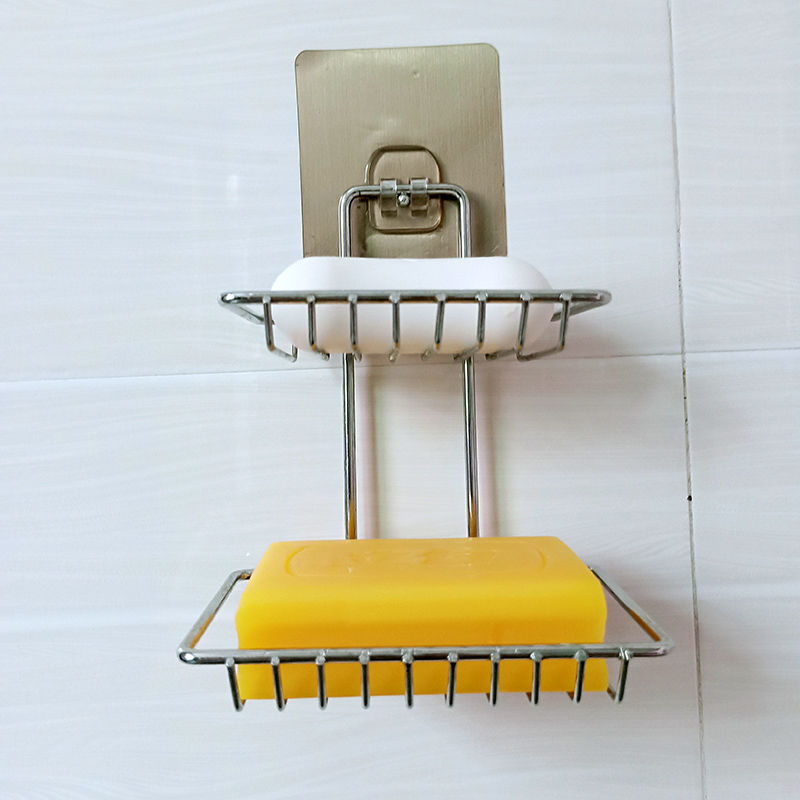 Punch-free stainless steel soap box rack seamless paste bathroom powder room single double layer soap rack storage storage box