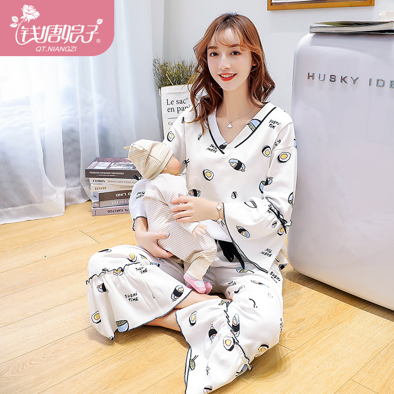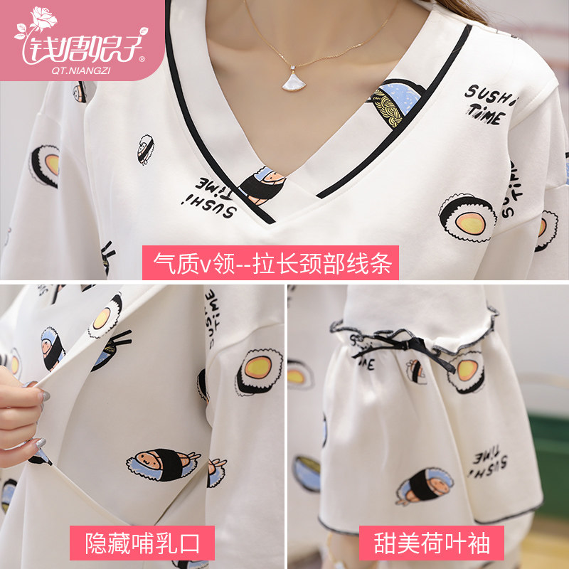 Moon clothes Spring and autumn and summer thin cotton maternity pajamas Women's summer sweat absorption July postpartum 9 nursing nursing clothing