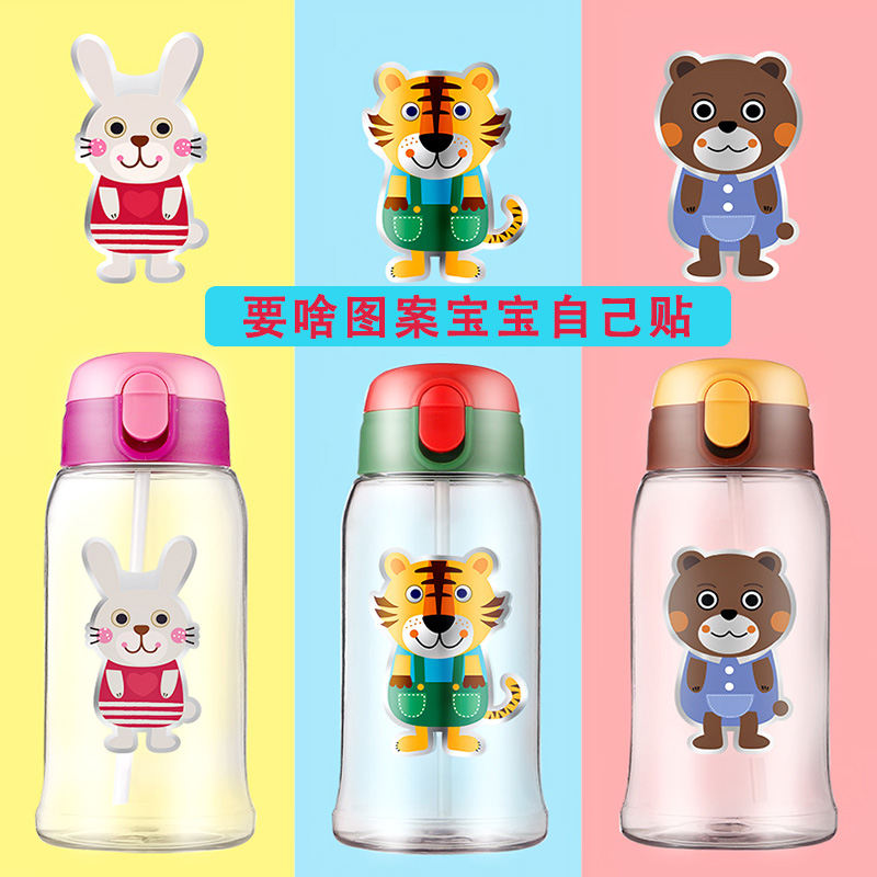 cuipo children's baby water glass tritan plastic summer kindergarten student anti-fall portable with straw cup