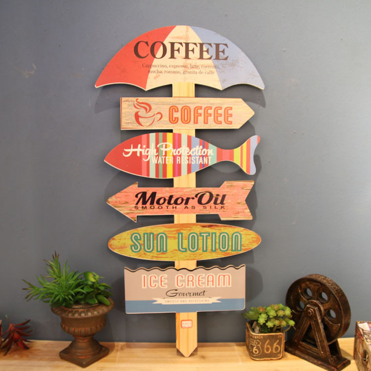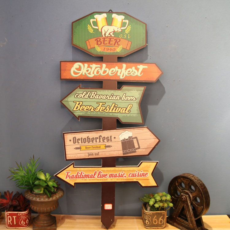 Industrial wind bar Internet cafe decoration pendant wall decoration retro nostalgic road sign pointing sign sign wall decoration