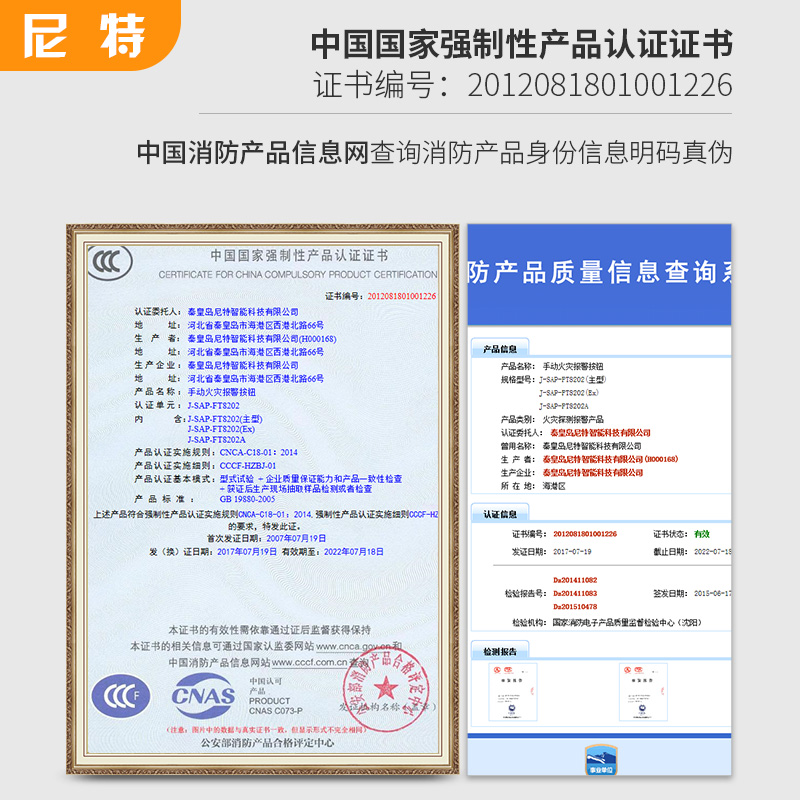 Qinhuangdao Nite fire alarm button Futong Nite manual fire alarm button J-SAP-FT8202