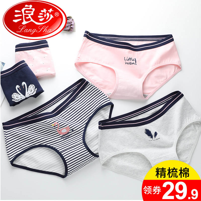 Langsha ladies cotton underwear female 100% cotton antibacterial mid-waist young girl cute triangle shorts campus style