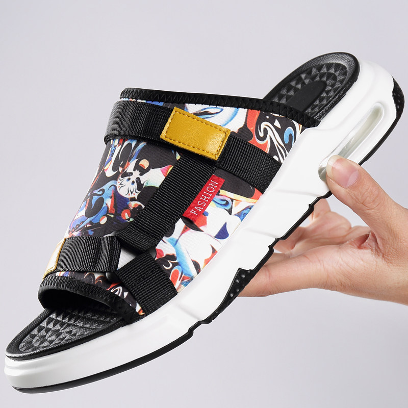 Net red slippers men's trend Korean version of personalized beach shoes summer social slippers Joker outdoor tide brand sandals