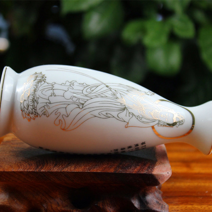 Buddha's former ceramic vase white sketching Guanyin water purification bottle Yang liubottle for Buddhist manna bottle lotus holy water bottle gonebottle