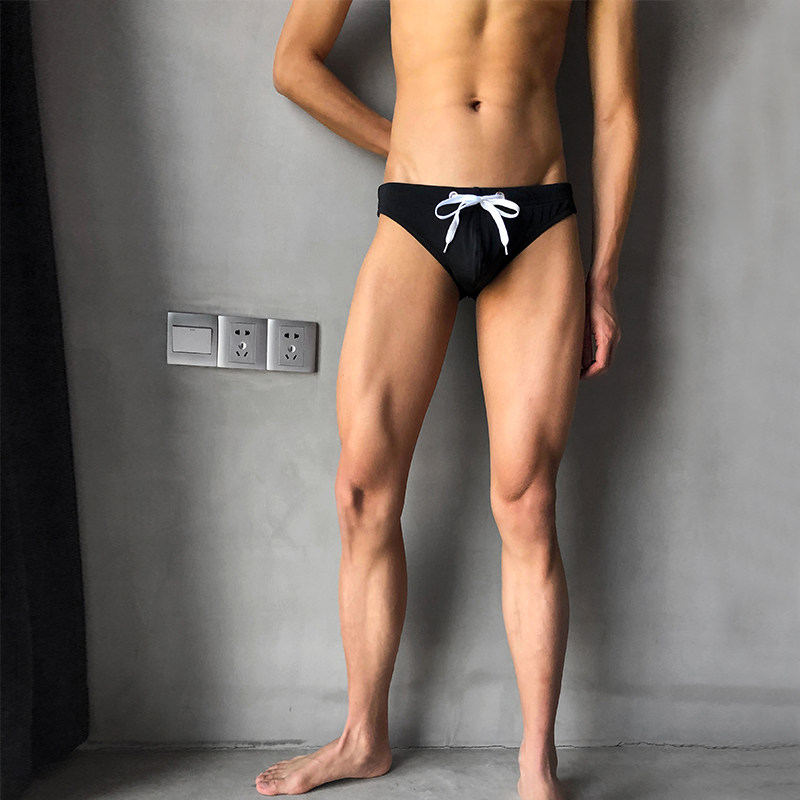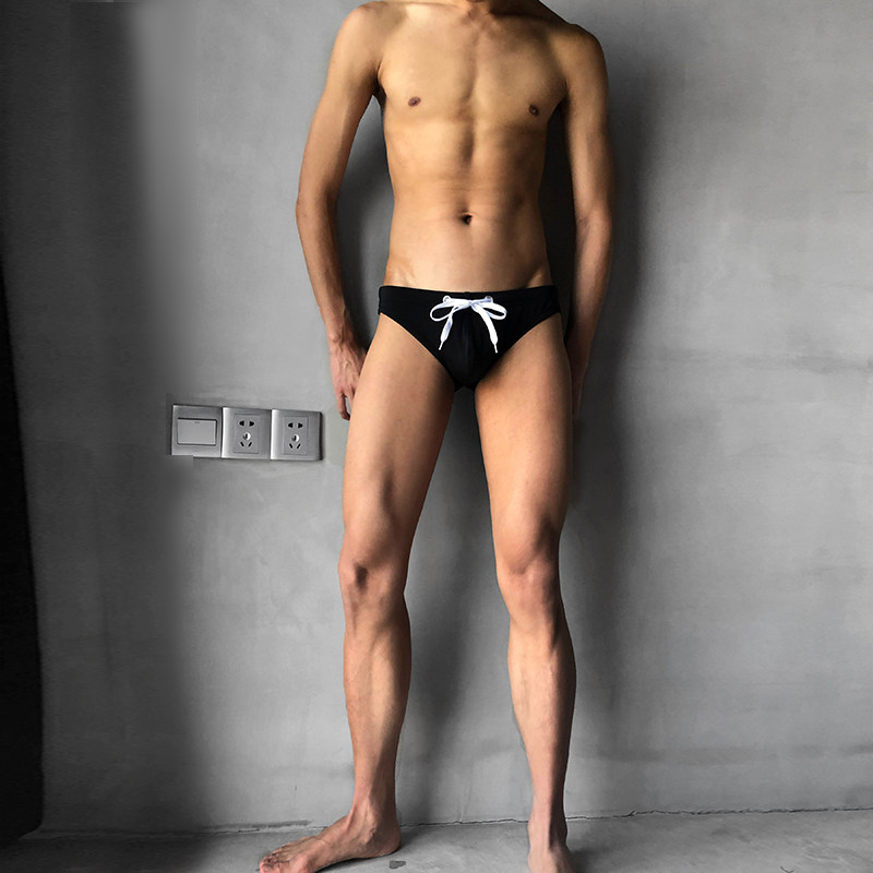 Swimming trunks men's sexy scoliosis thong transparent fashion low waist tight men's bikini swimming trunks