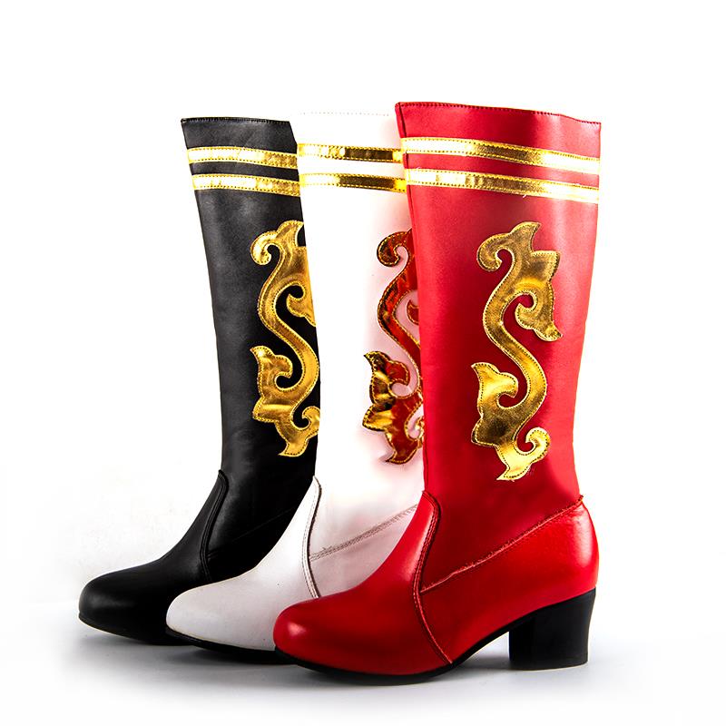 Mongolian dance boots for men and women Mongolian shoes tall boots half cowhide half leather i white daily ethnic wind riding boots