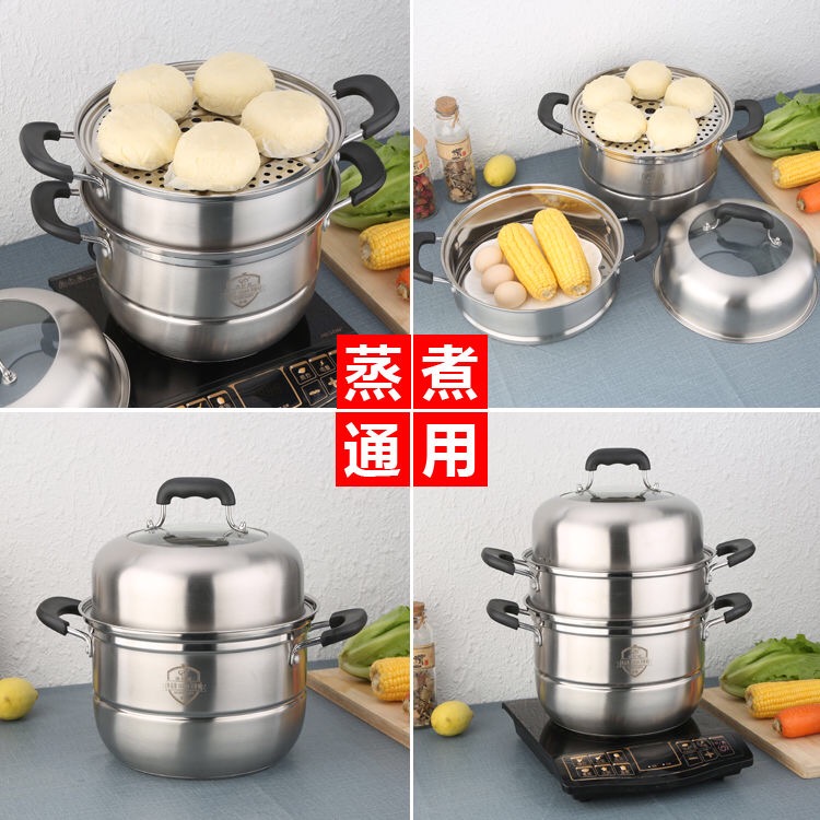 Steam pot 304 stainless steel home steam cage thickened steamed steamed buns large number 2 layers of three layers of multi-layer induction cookware gas cooker
