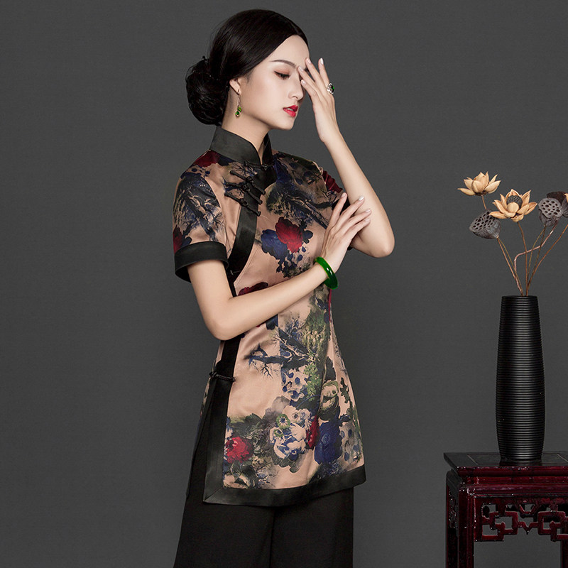 Chinese classic Tang Costume Woman Medium Long version of the new body Conspicued Chinese Pan Button Blouses Women Country Wind Retro Women's Clothes
