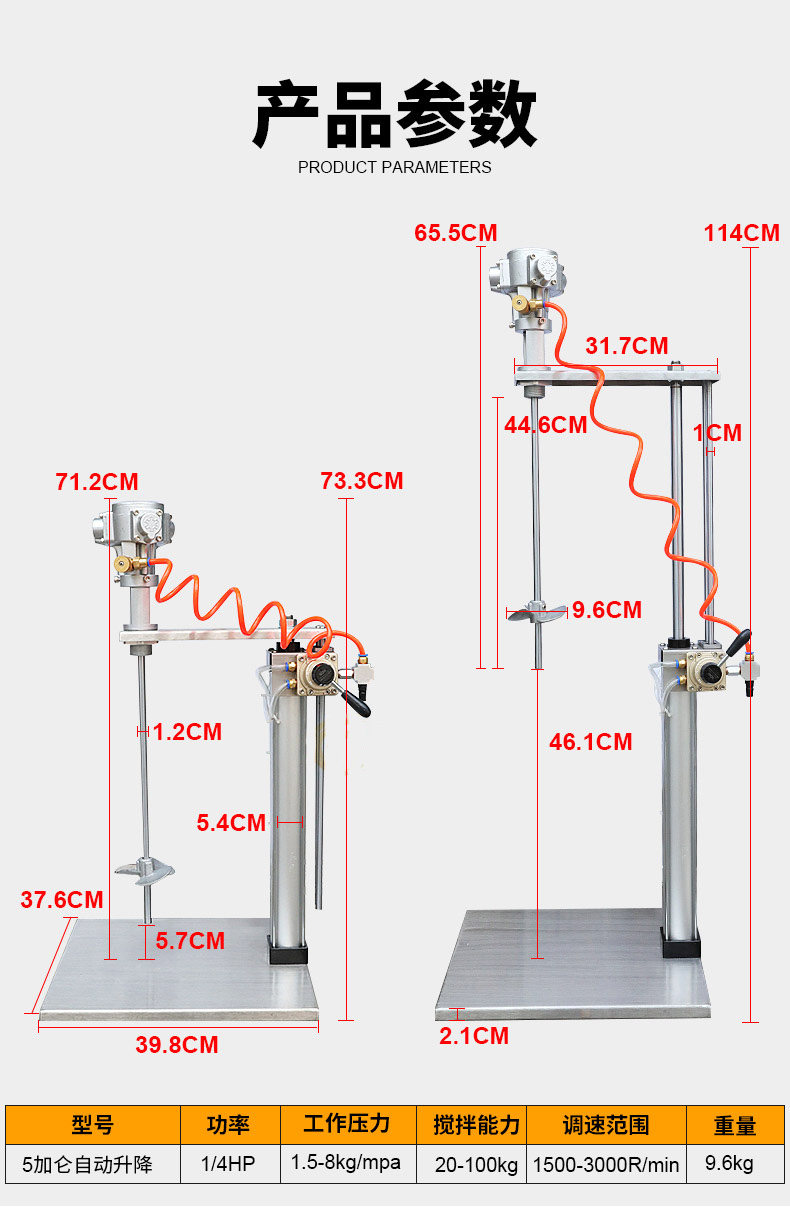 WGF strong speed five gallon pneumatic agitator lifting pneumatic mixer industrial coating ink paint stirring
