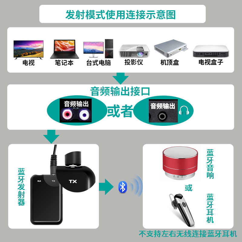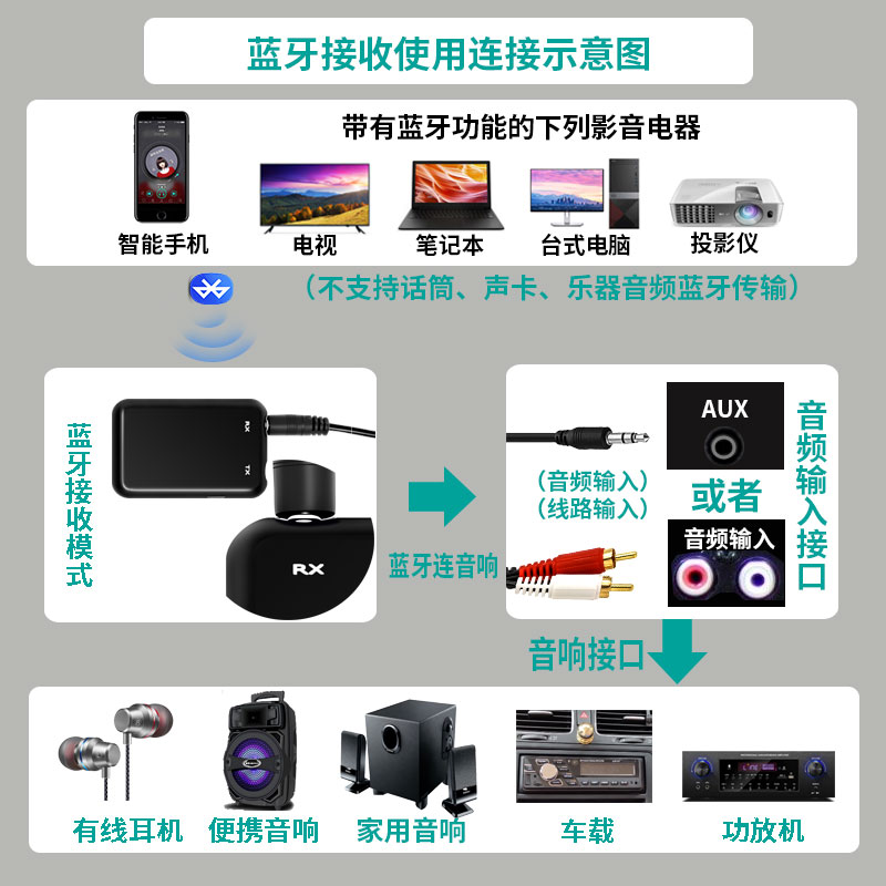 Computer projector Wireless Bluetooth 5 0 Audio transmitter Receiver 2-in-1 converter amplifier Sound box