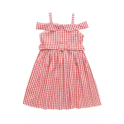 Children's suit girls ' summer clothes plaid strapless dress 2021 new middle child children's western princess suspender skirt