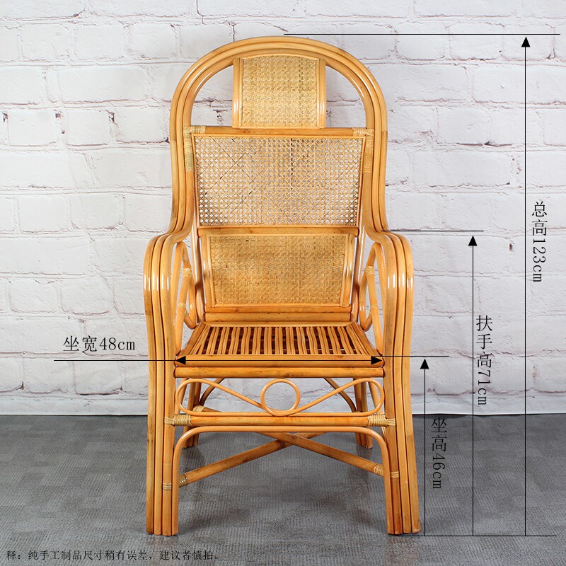 Natural real rattan high back old leisure rattan chair single office household Teng chair weaving breathable outdoor