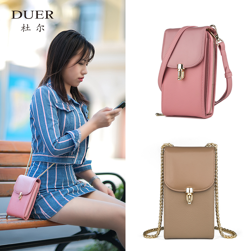 Burglar-proof brushed mobile phone bag Female slanted satchel 2022 new genuine leather women's packaging mobile phone with zero money packet bag in summer