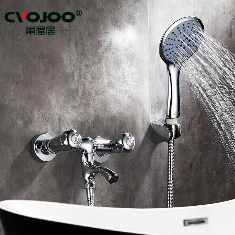 Double Switch Shower Shower Shower Bath bathtub tap hot and cold full copper double cut double cut into wall-style bath water mixing valve