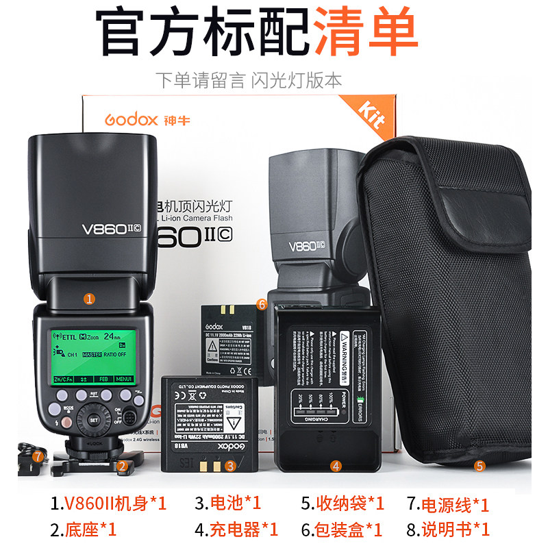 V860II standard gift pack X2T flasher Feng Standard No 5 battery (message camera version)
