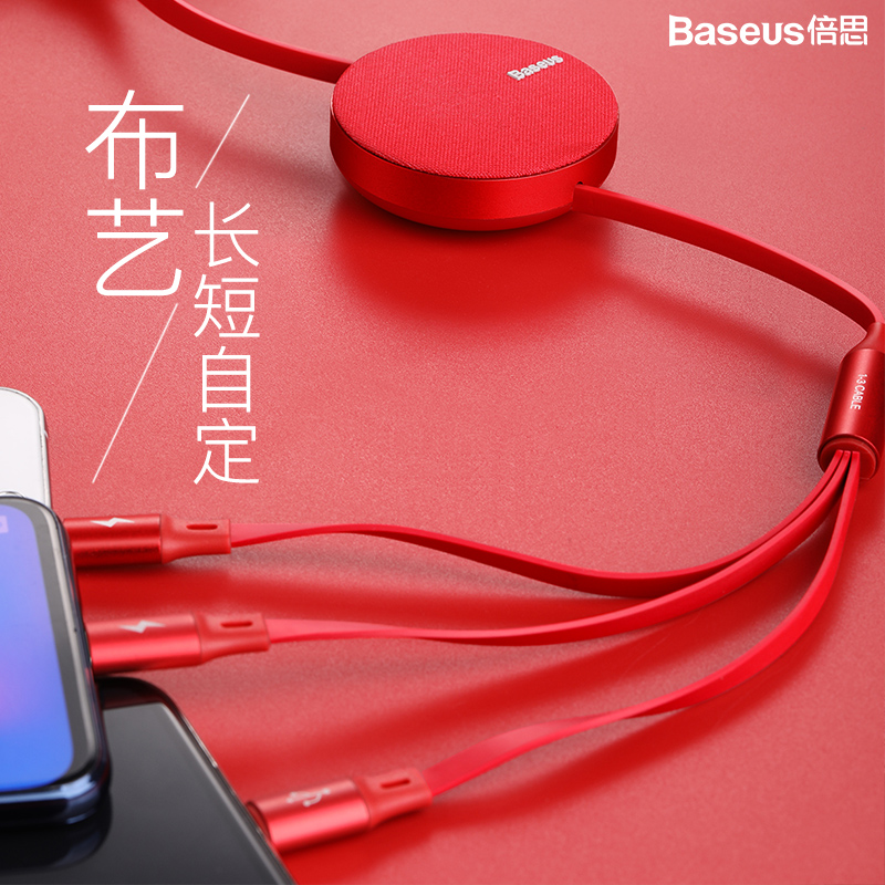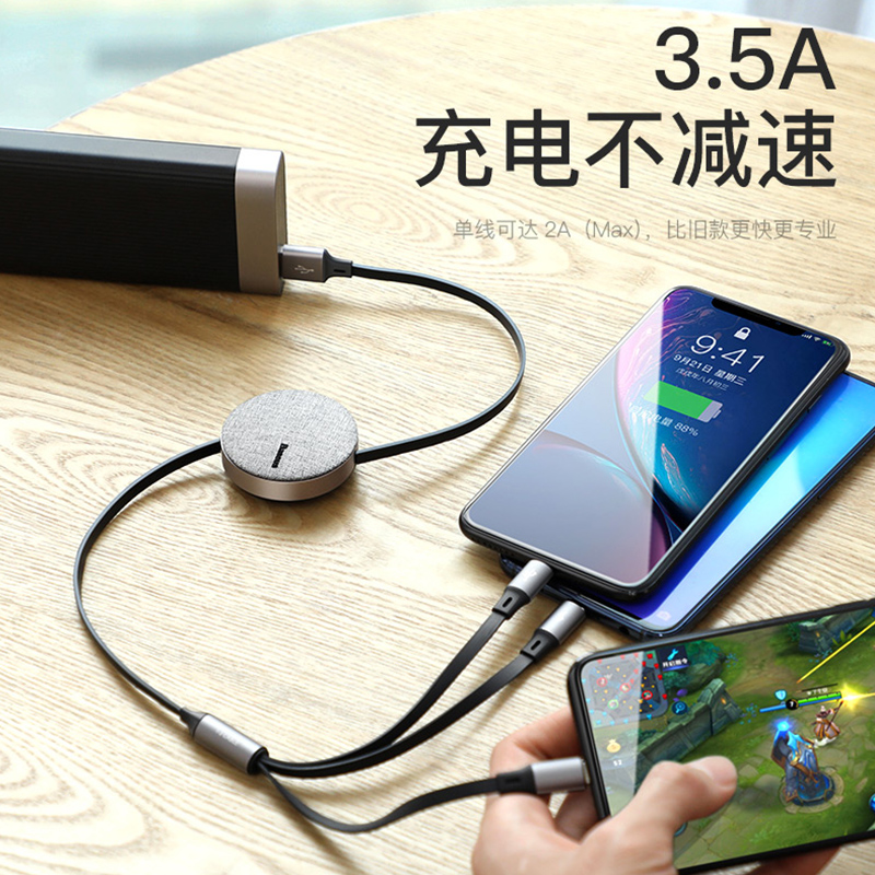 Baseus charging cable one-to-three extension can be retracted, suitable for Apple Android typec dual-purpose fast charging data cable telescopic storage three-in-one short car mobile phone multi-head travel gift customization