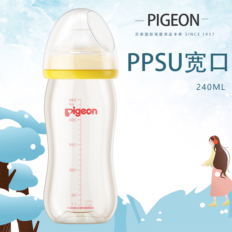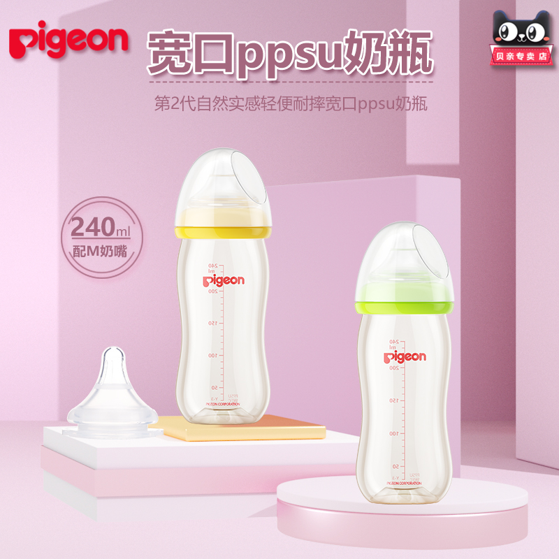 Pigeon wide-caliber PPSU bottle 240ml green and yellow with m-size nipple AA74 75
