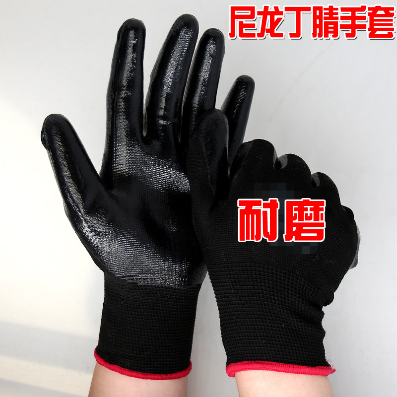 Nylon nitrile gloves Nitrile butadiene impregnated anti-slip wear-resistant gloves glued hanging glue durable oil-resistant labor protection work gloves