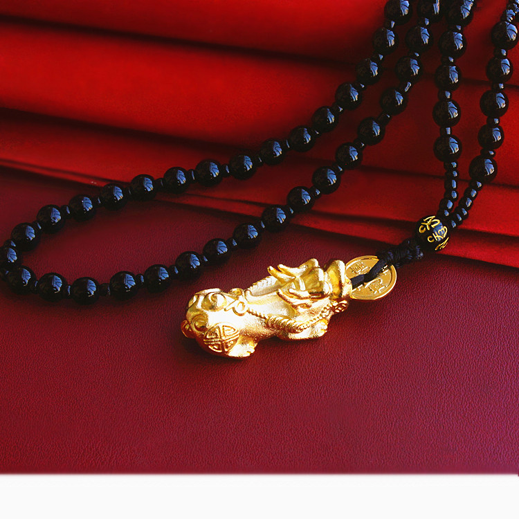 Hollowed-out Kuan Kung (delivered rope) Cubist (delivered rope) Hollowed-out Dragon Card (Send Rope) Gold Inlaid Jade Dragon Card (Delivered Jade Bead Necklace) 60CM Black Beads Leopard Necklace