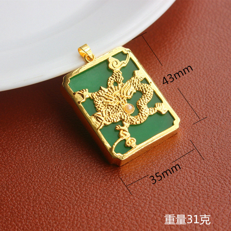 Plated with thick gold inlaid jade emerald male pendant with leapfroid jade bead necklace jade bead necklace with atmospheric Buddha Guan Dragon brand Picchu Shagin