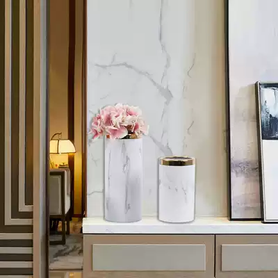 Modern simple marble texture Ceramic vase Light luxury Phnom penh flower arrangement Living room dining table TV cabinet decoration