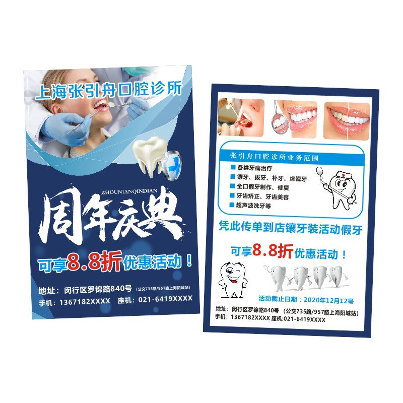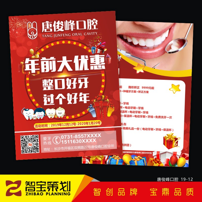 Oral dental clinic opening advertising campaign flyer design and production of dental care instructions tri-fold custom