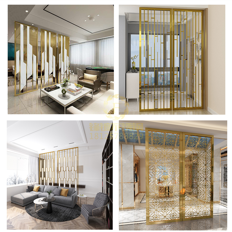 Factory Direct Stainless Steel Screen Partition Aluminium Alloy Chinese Hollowed-out Flower Lattice Brief Modern Light Lavish Iron Art Decor