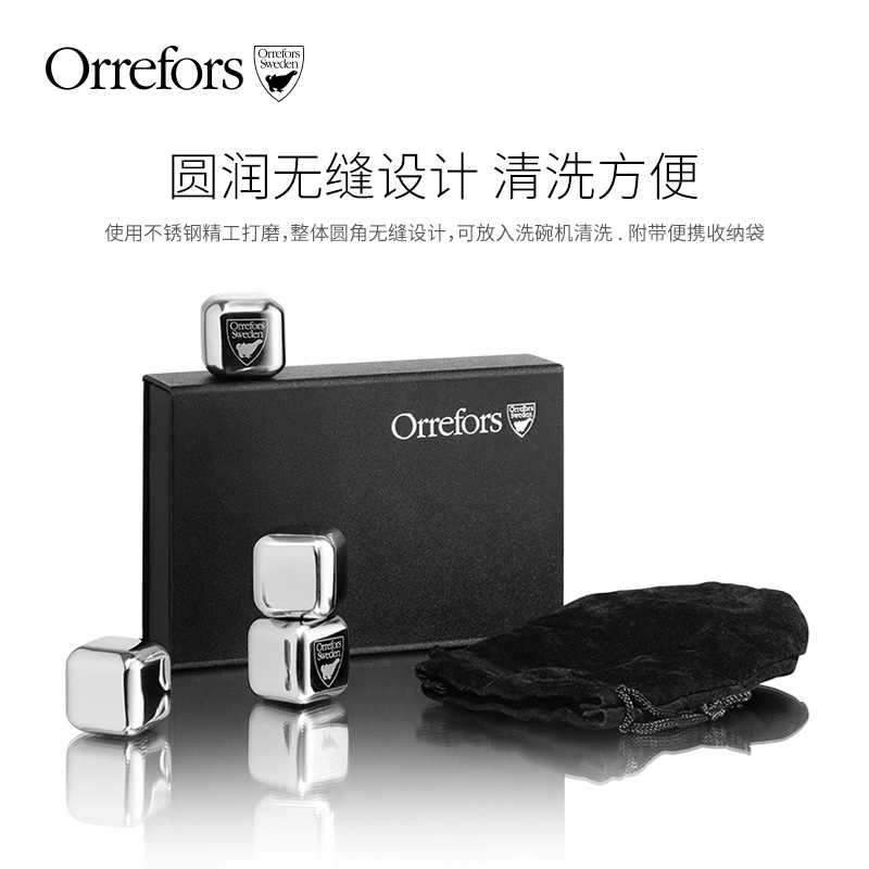 Orrefors CITY City Series Stainless Steel Ice Cubes Whiskey and Wine Frozen Ice 4pcs Gift Box