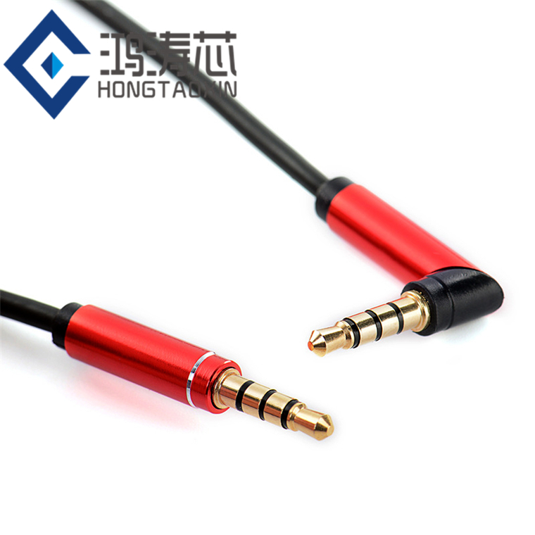 Car AUX audio cable 3 5mm male to male four-section microphone mobile phone headset audio cable elbow