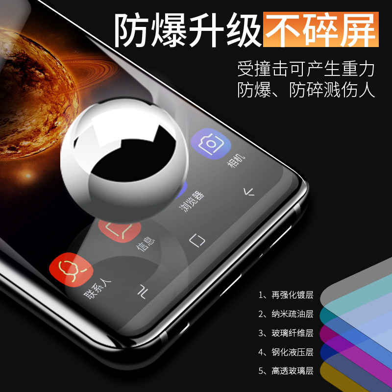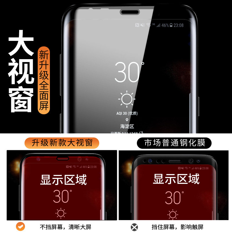 Samsung s8 tempered film s9 plus full screen cover curved glass note8 mobile phone protective film 9 hot bending water condensation uv small fine edge large window curved screen HD anti-blue light full glue full fit screensaver
