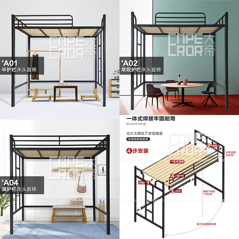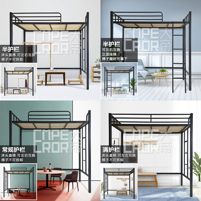 Iron art assembly elevated bed sheet upper space-saving attic high and low iron frame bed shelf double detachable wooden board