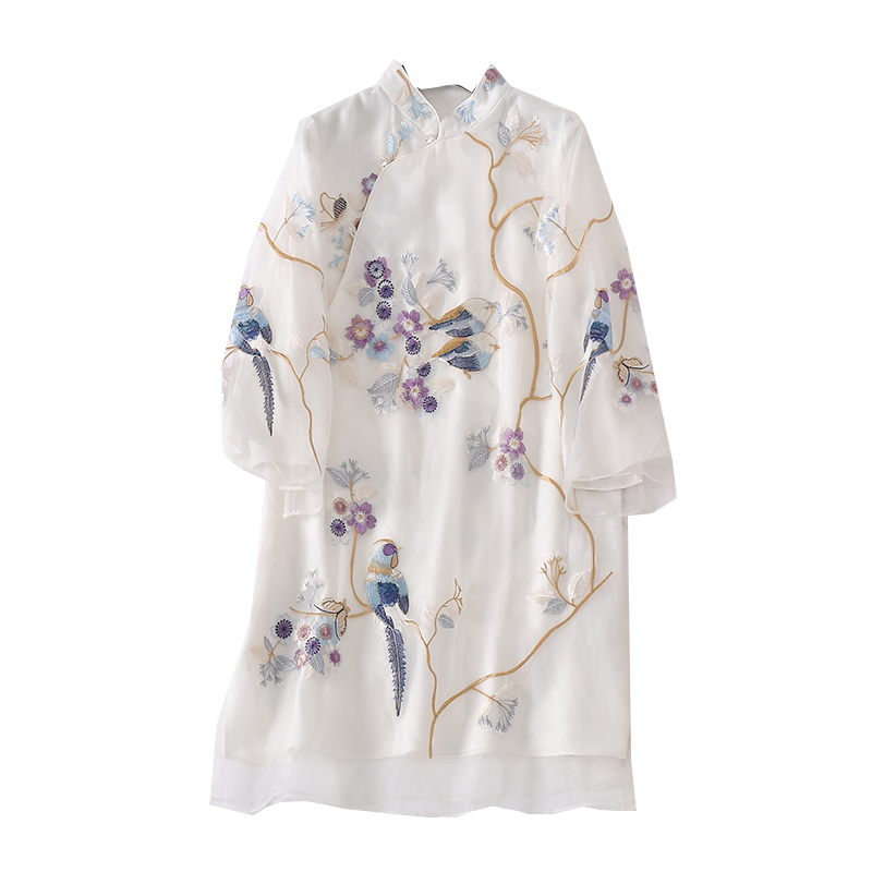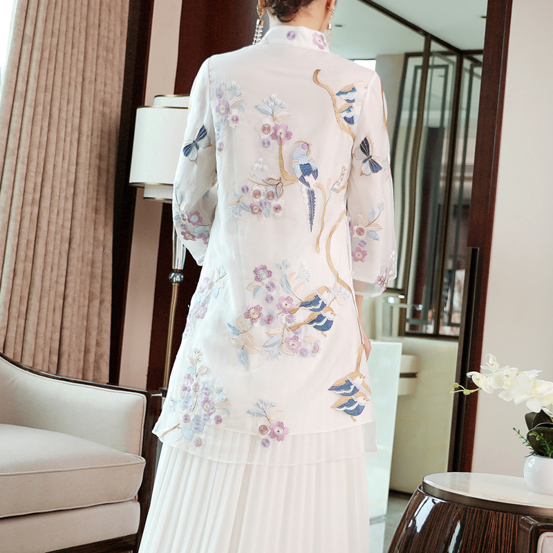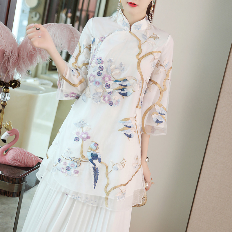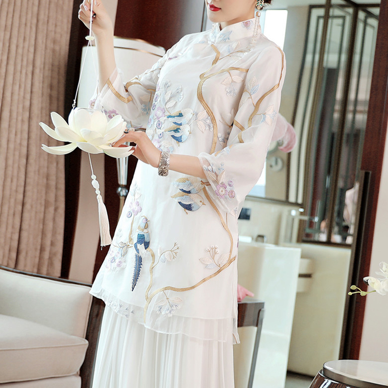 2022 spring and summer new Chinese wind improvement Tangclothing blouse white loose large size embroidered Republic of China Wind and art tea suit