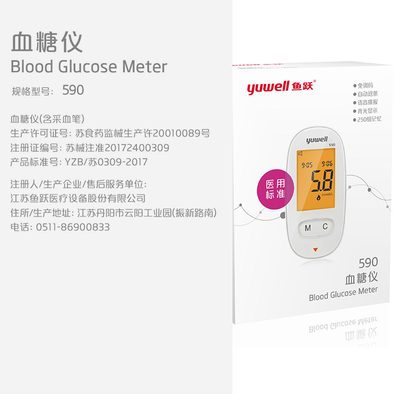 Fish jump blood glucose testing machine household accurate 100 pieces of independent loading test paper 590 medical voice blood glucose measurement instrument
