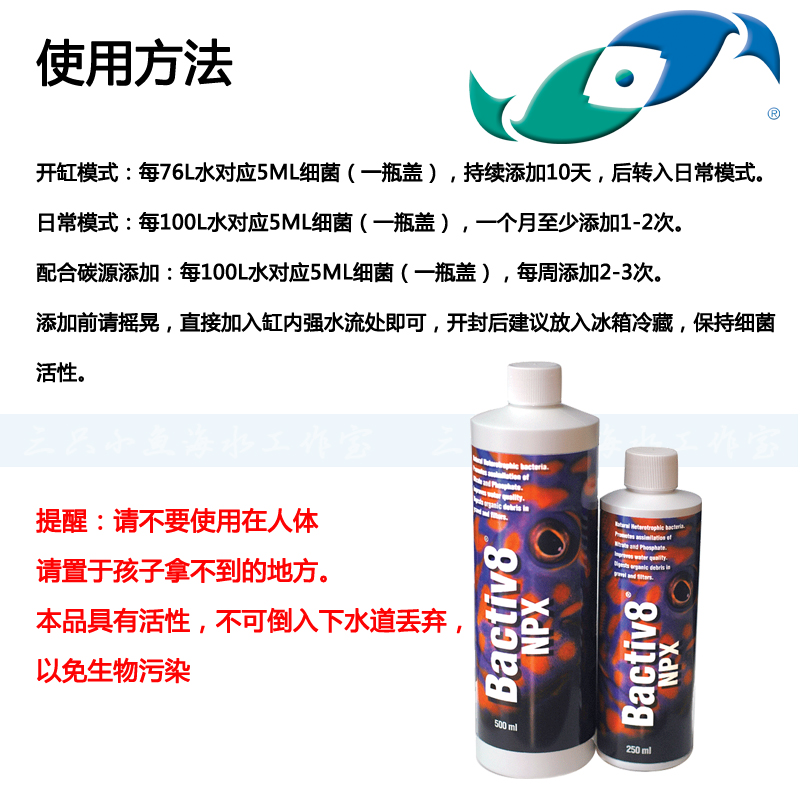 US two small fish seawater nitrifying bacteria Bactive8 NPX live bacteria Sea-cylinder nitrobacteria 250ML