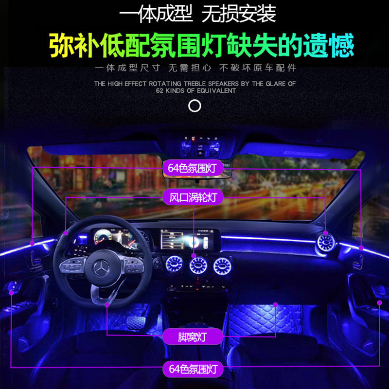 It is recommended to install a deposit white 64-color atmosphere light (send foot nest light handle light) 64-color atmosphere light front turbine 5 rear turbine 2 64-color atmosphere light front turbine package