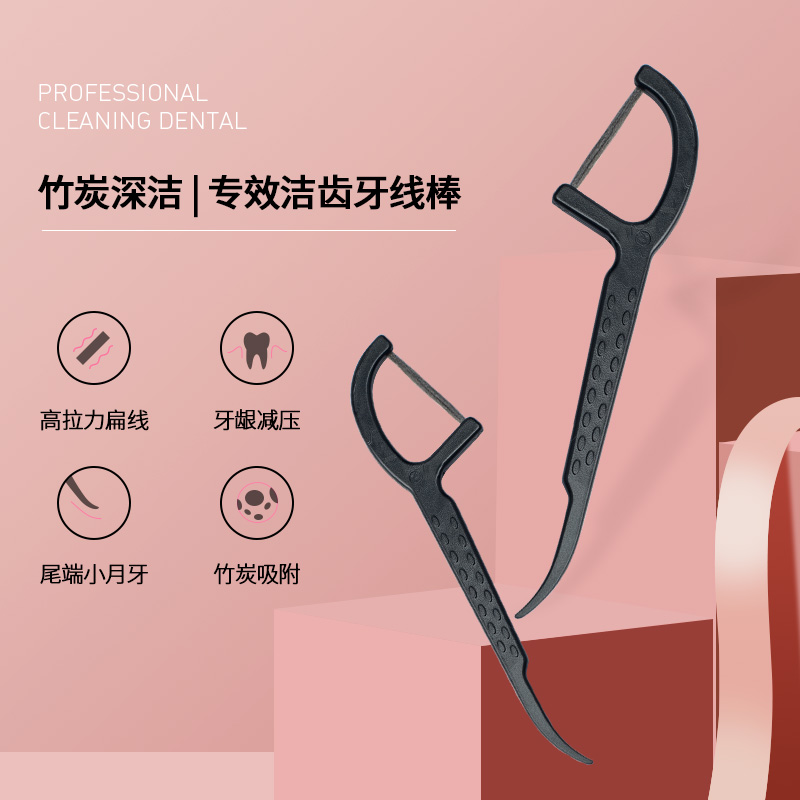 Shuke floss stick Portable boxed bamboo charcoal cleaning Disposable bow floss line Flat line toothpick Family pack