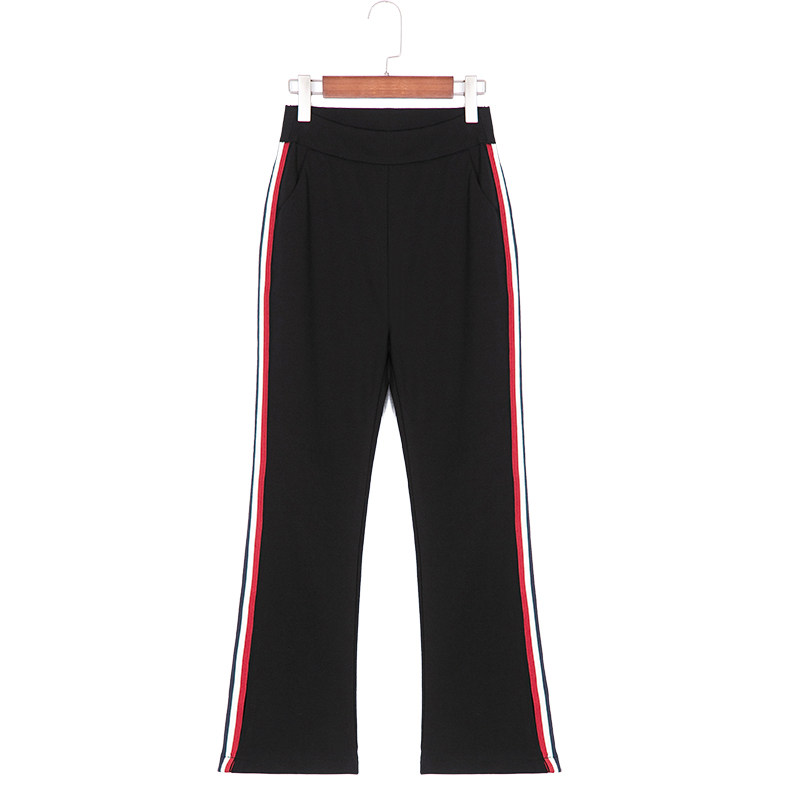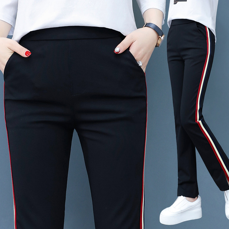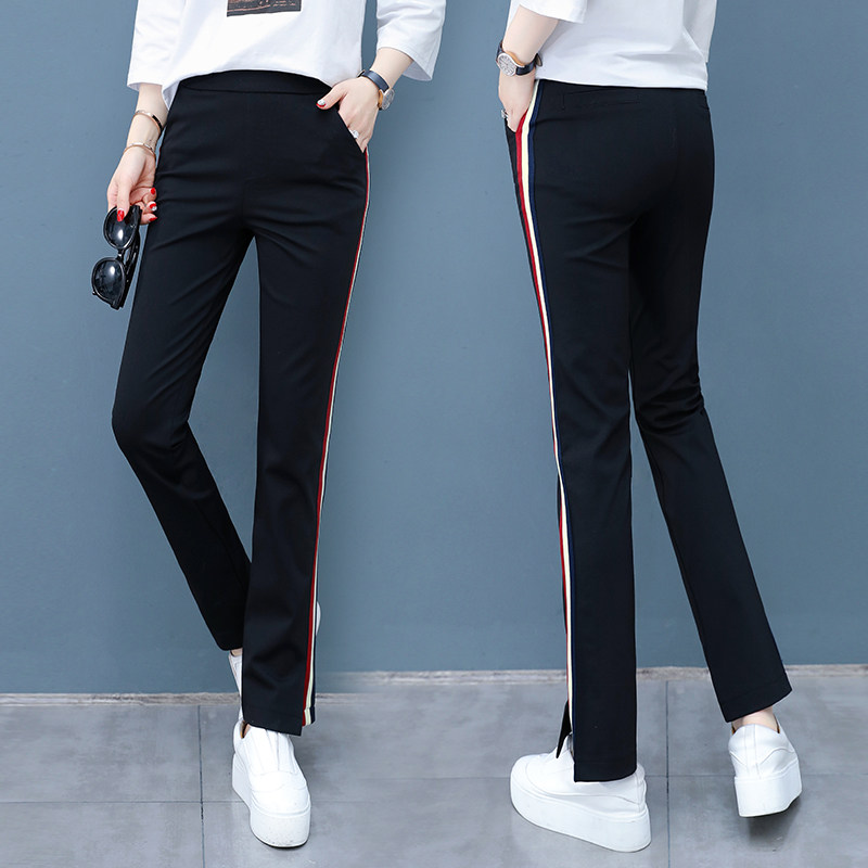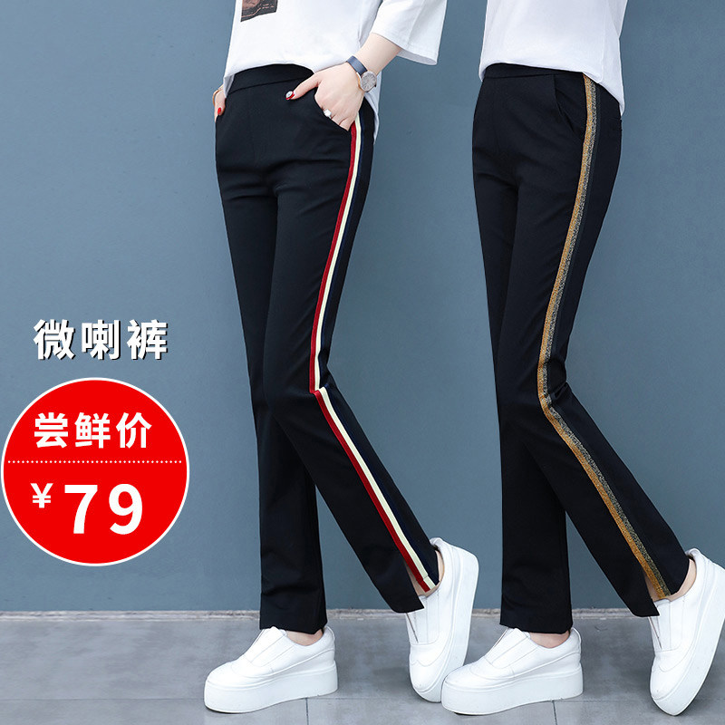 Split flared pants women's summer thin section 2022 side stripes high waist slim nine-point pants fat mm Hong Kong style micro-flared pants