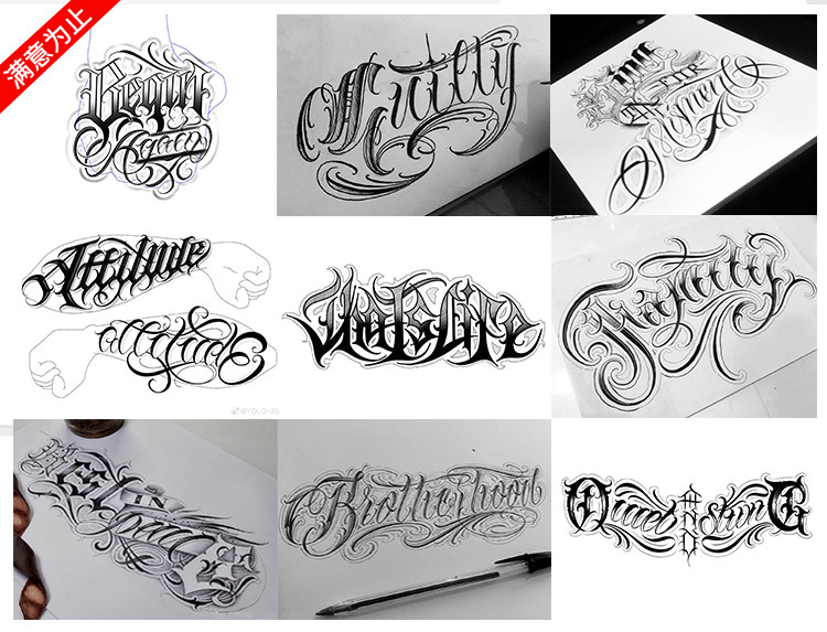Custom tattoo font design flower body word Chicano manuscript Chinese and English letter name totem set