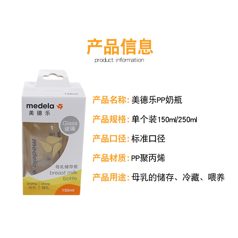 medela glass bottle 150mL standard caliber baby neonatal storage bottle one-piece sealing cover Single pack