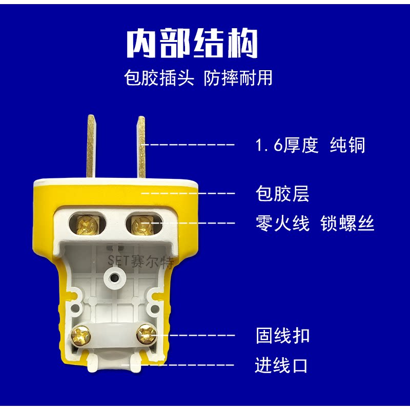 Pure copper 16a high-power 2-pin plug secondary switchable power cord head household appliances 2-hole socket docking 2 plug