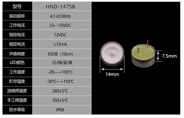 HND-1475B miniature waterproof buzzer buzzer 5v9v12v often ringing and bright flashing buzzer
