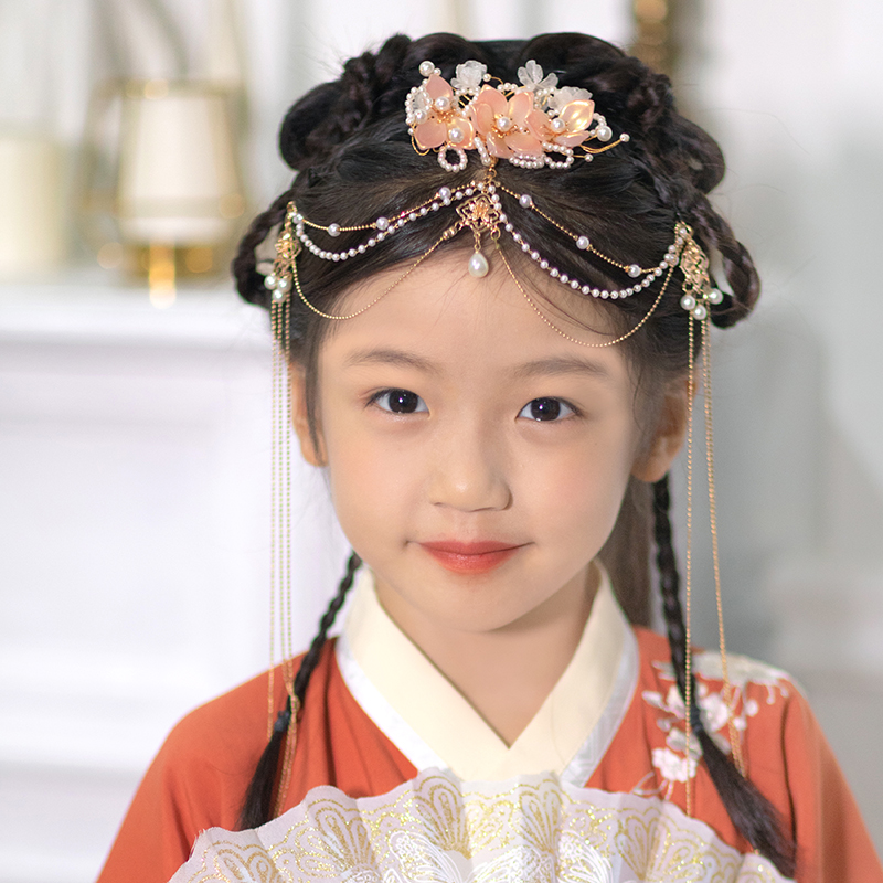 Chu Li Hanfu daughter children's accessories Tea Tea Chinese wind head decoration Red bean embroidered hair band Flower Phoenix sequence hair crown
