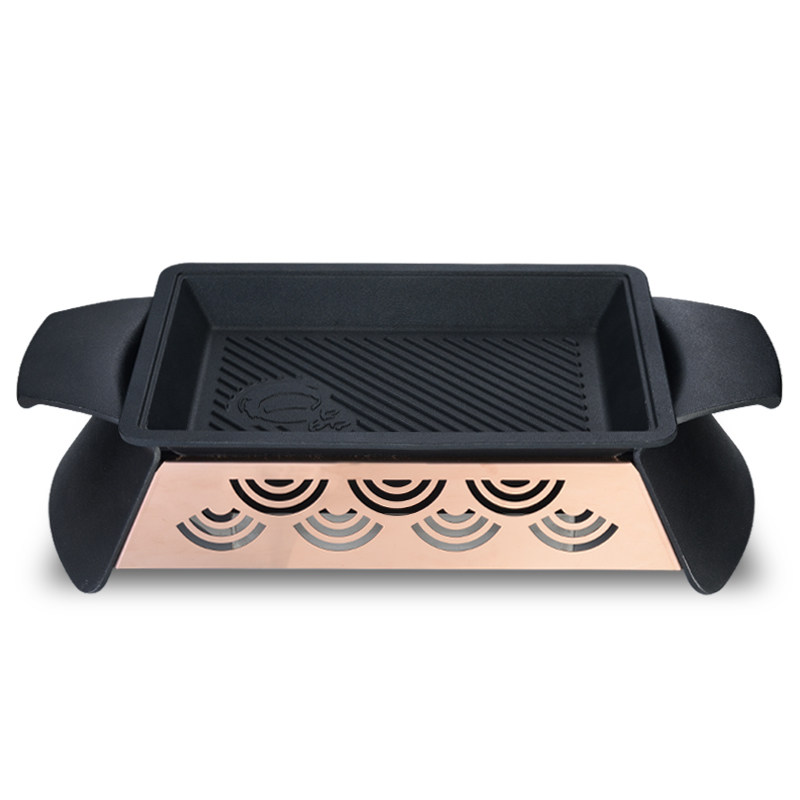 A pint rectangular large number (40 x 28cm) a pint rectangular trumpet (35x23cm) a pint of round composite bottom rose gold 26cm pint of round composite bottom rose gold 30cm pint