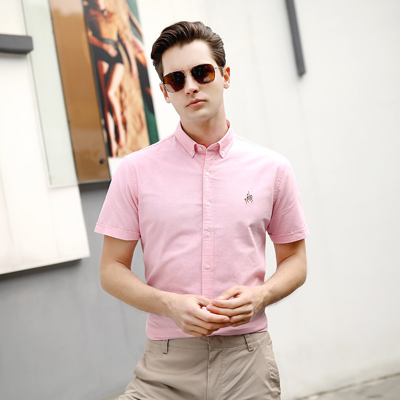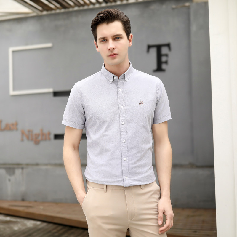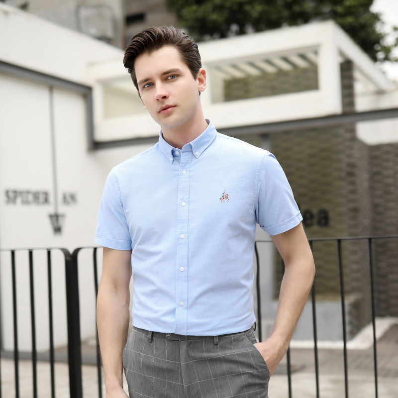 Olaf Laurenma ball summer new short sleeve shirt male pure cotton Oxford spun half sleeve shirt youth casual workout men's inches